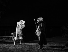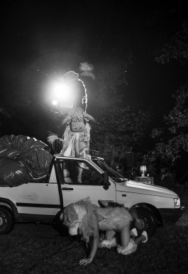 […] das Theaterkollektiv ELLE […] läßt drei seltsame Gestalten: den Erleuchthund, die blondierte Stierin und
